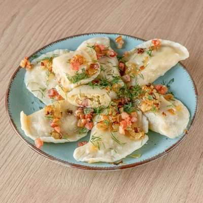 ziemniaki, smażony boczek, cebulka, ser żółty